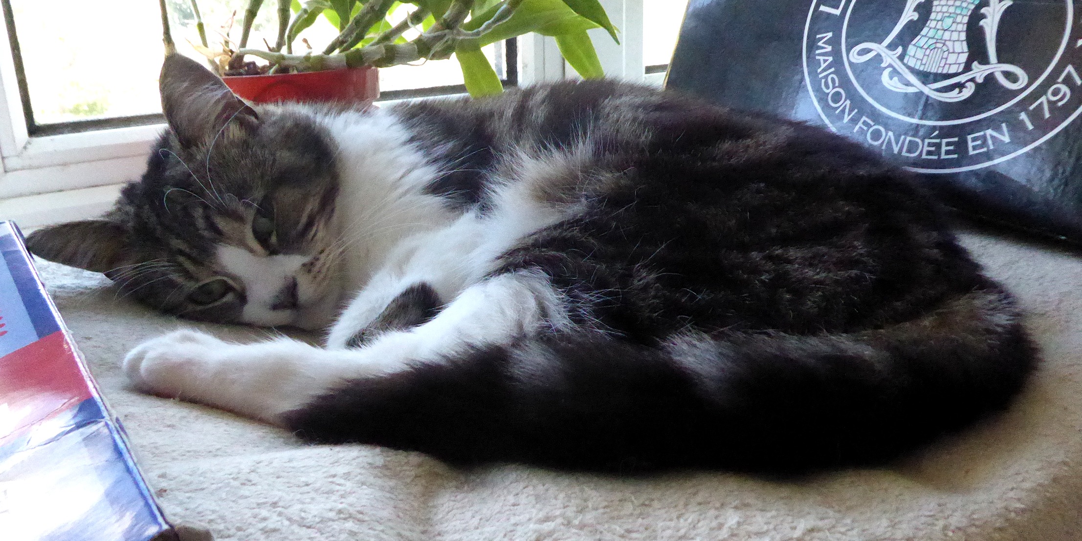 I’ll leave you this month with a fairly rubbish photo of Tilly Cat in repose this afternoon amongst the miscellaneous garbage in the study.